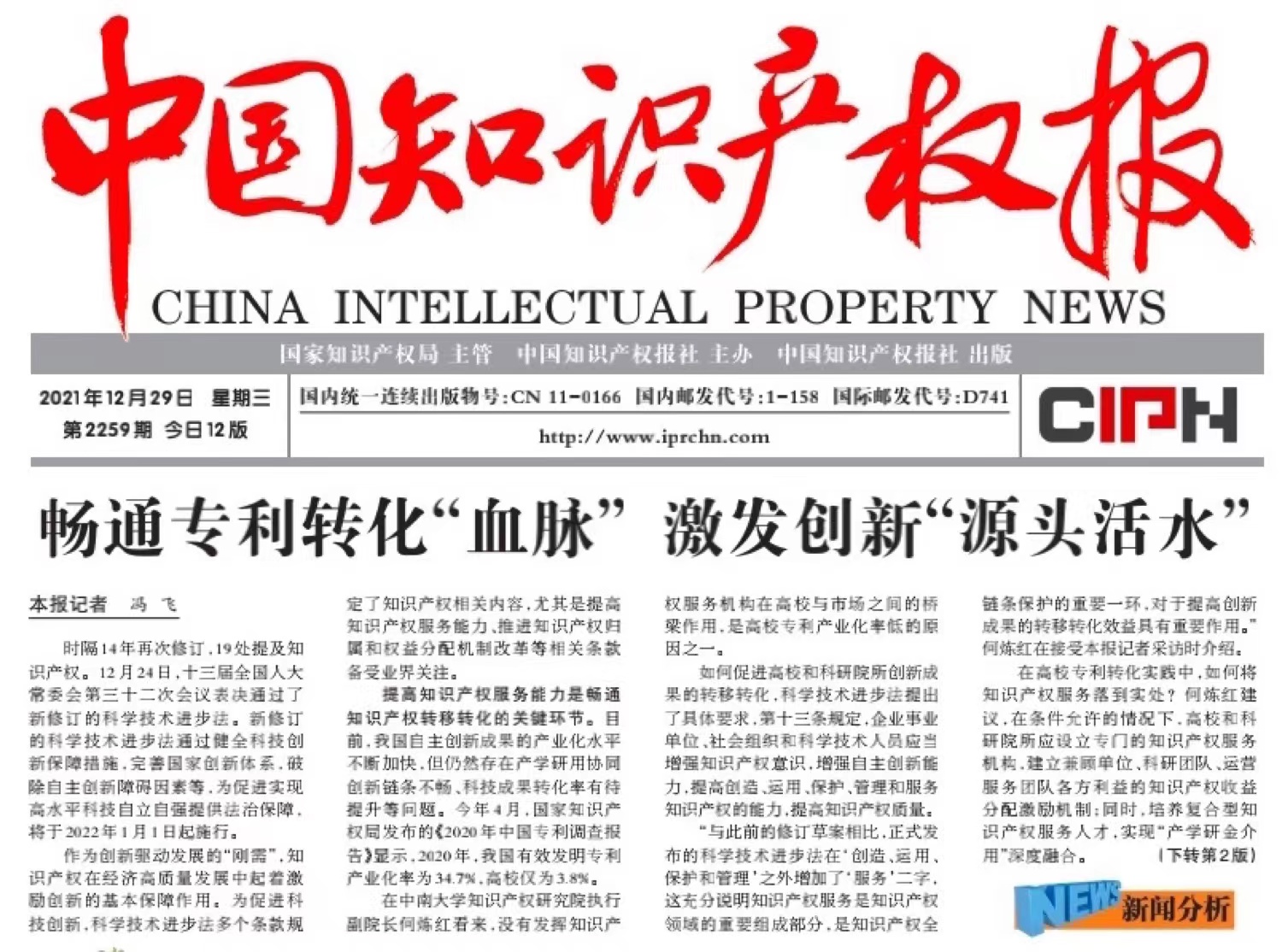 中国知识产权报|畅通专利转化“血脉” 激发创新“源头活水”