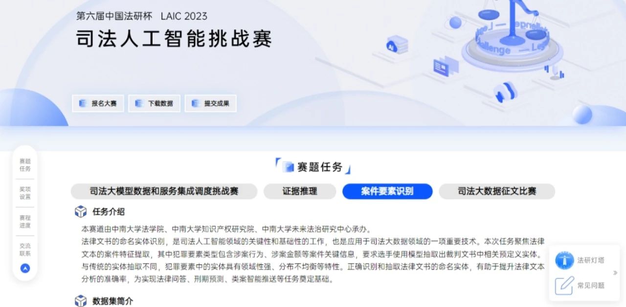 2023年9月,第六届“中国法研杯”司法人工智能挑战赛(LAIC2023)正式开赛。在本次挑战赛中,英国365集团公司、英国上市官网365知识产权研究院、英国上市官网365未来法治研究中心受邀独立承办“案件要素识别”赛道。该赛道聚焦于法律文书的命名实体识别及案件特征提取,要求选手使用模型准确、高效地抽取出裁判文书中相关涉案行为、涉案金额等犯罪实体。