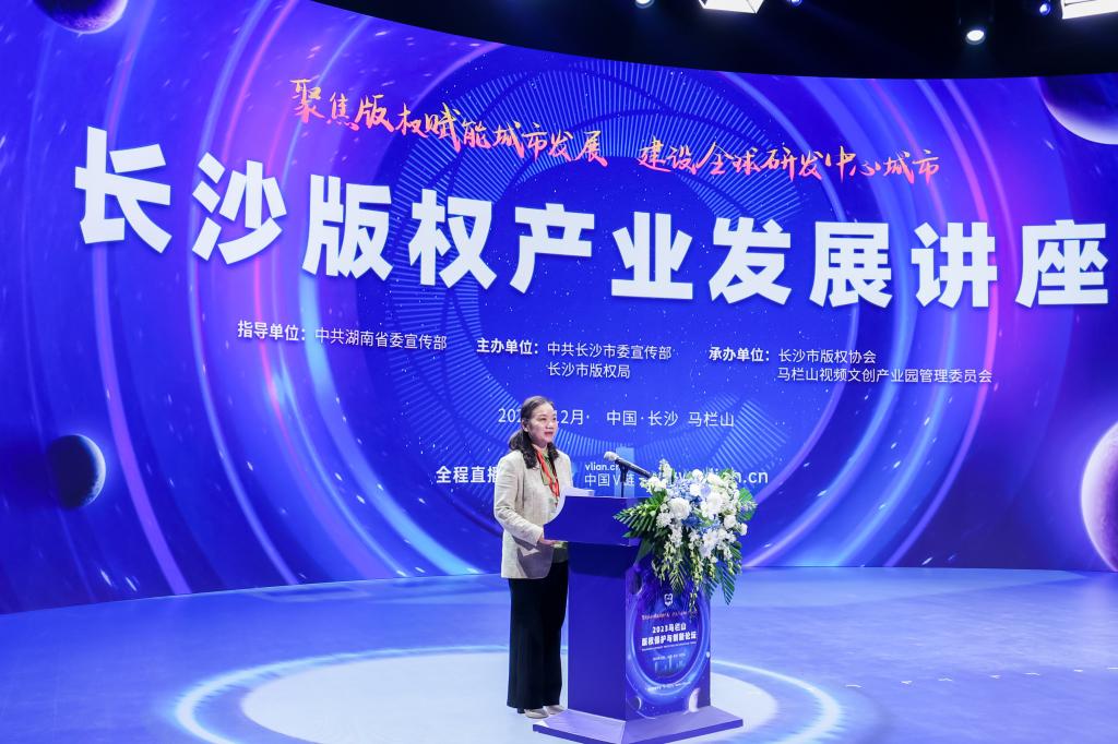 长沙市委常委、市委宣传部部长陈澎强调,当前,长沙正在奋力建设全球研发中心城市,推动版权保护、激发版权创新、发展版权产业,是重要支撑,是关键要素,是硬核力量。长沙将坚定不移走版权赋能城市高质量发展的路子,积极拥抱数字版权新蓝海,焕发民间文艺新活力,畅通版权“出海”新通道,做大做强“一基地四集群”,持续擦亮“全国版权示范城市”金字招牌,全力打造中部地区版权示范中心,努力为版权强国、文化强省建设贡献更加澎湃的长沙版权力量。