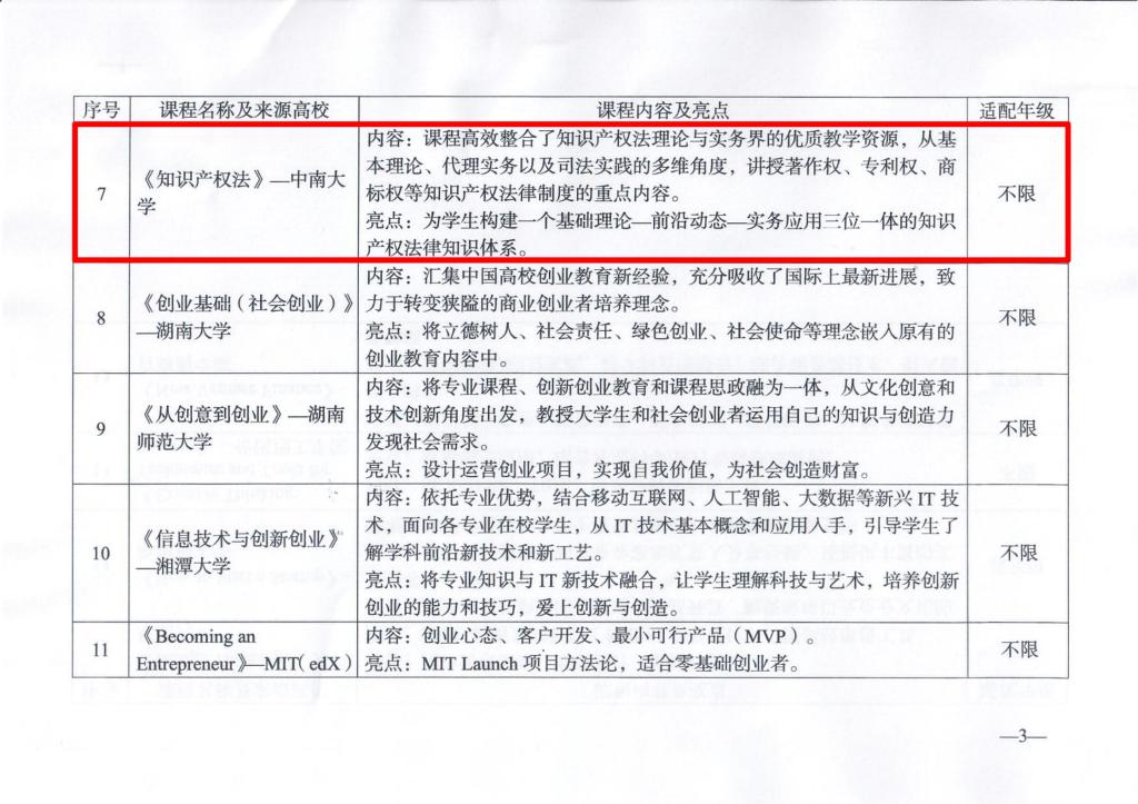 英国上市官网365《知识产权法》在线课程入选湖南省创业教育通识性课程推荐名单