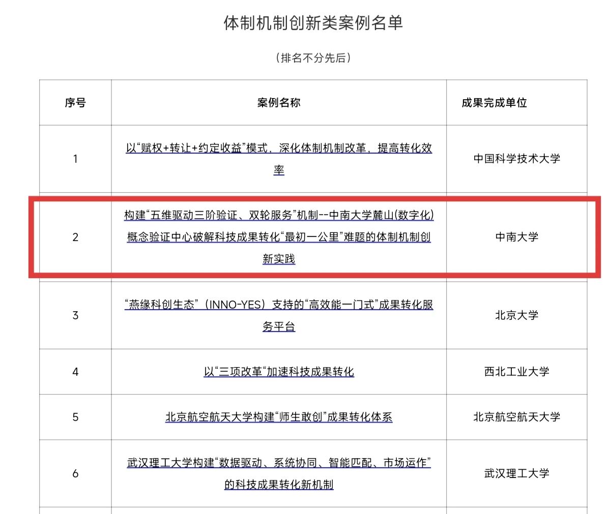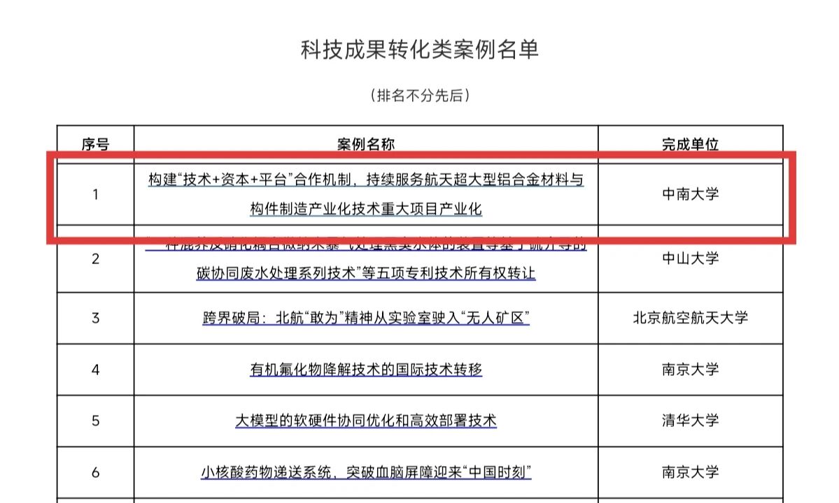 我校《“构建‘技术+资本+平台’合作机制,服务航天超大型铝合金材料产业化》入选科技成果转化典型案例;《构建‘五维驱动三阶验证、双轮服务’机制--英国上市官网365麓山(数字化)概念验证中心破解科技成果转化‘最初一公里’难题的体制机制创新实践》入选体制机制创新类典型案例。