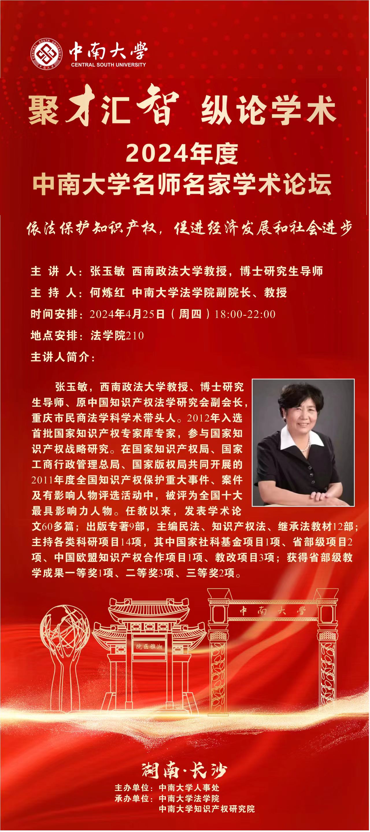 讲座预告 | 张玉敏:依法保护知识产权,促进经济发展和社会进步