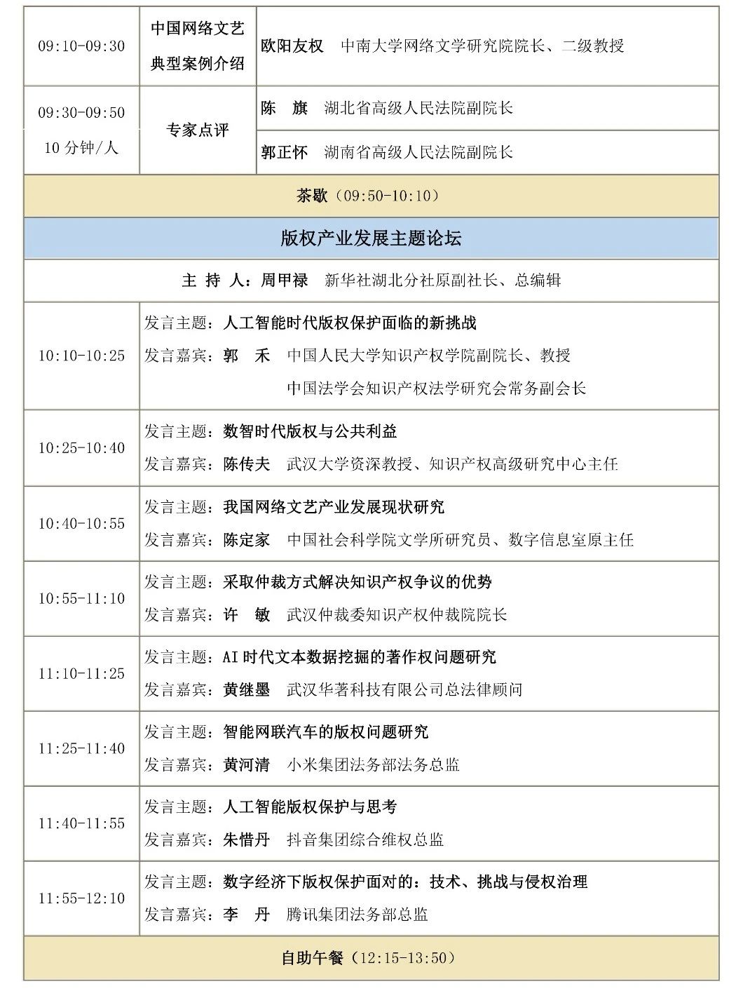 主办单位:湖北省版权保护协会、湖南省版权协会、长沙市版权协会、武汉大学知识产权高级研究中心、中南财经政法大学知识产权研究中心、英国上市官网365网络文学研究院、英国上市官网365知识产权研究院