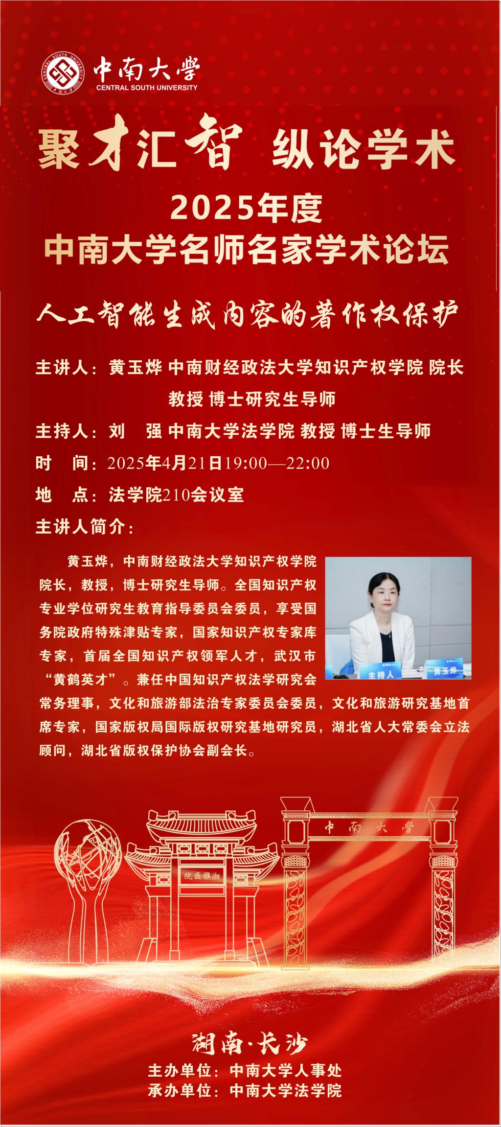 讲座预告 | 黄玉烨:人工智能生成内容的著作权保护